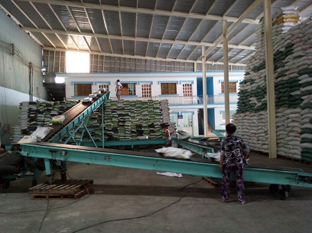 The total area of 20,000 m2 warehouse, with 08 lines or polished rice, 1,200 tons capacity day and night